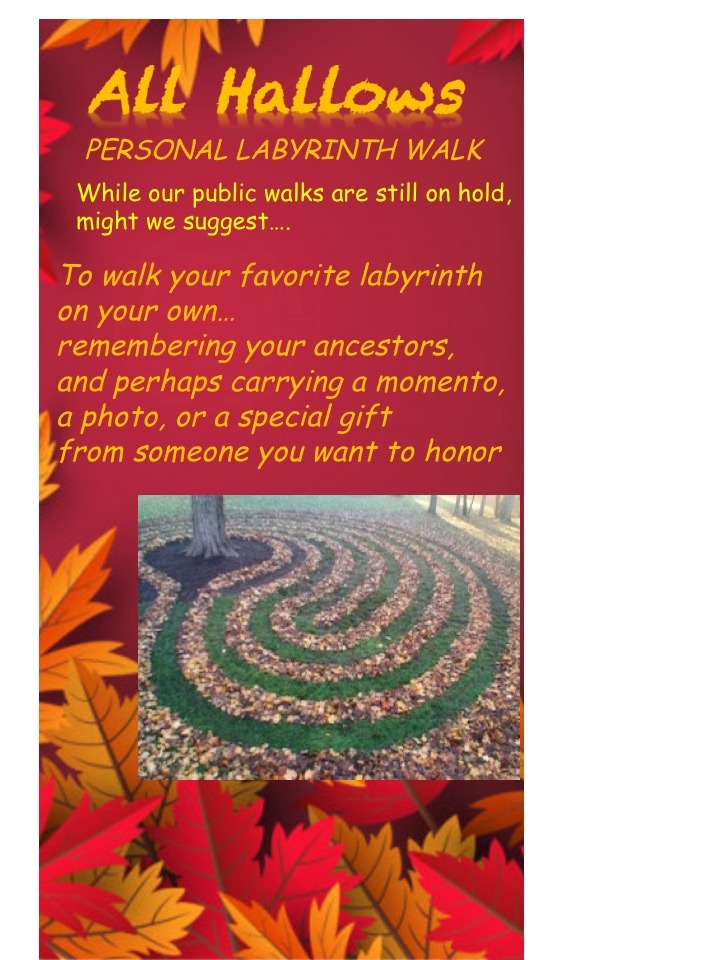 October 12, 2020Labyrinth Resource Group of Santa Fe Leave a comment Share this: Click to share on X (Opens in new window) X Click to share on Facebook (Opens in new window) Facebook Like Loading... Related