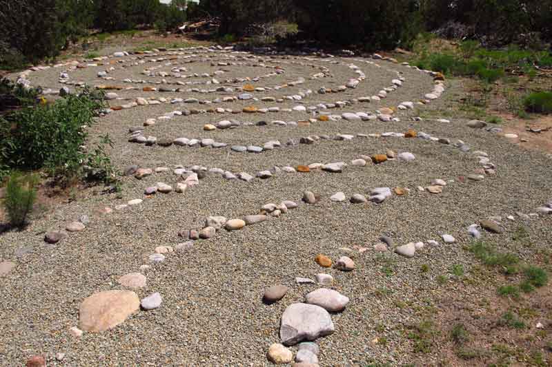 Directions: From NM 599 (Santa Fe Relief Route; the Bypass) and Camino de los Montoyas, turn onto Camino de los Montoyas, and almost immediately turn left onto Unity Way. The road turns right and then the way to the churchyard turns off to the left. There’s a path to the left that starts almost directly opposite the church door – follow it to the labyrinth.