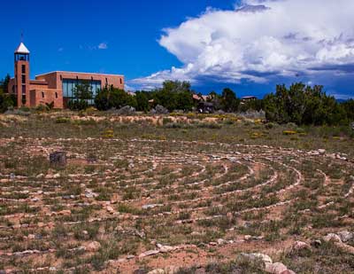 Directions: From Rodeo Road, turn onto Richards Avenue going south (towards Santa Fe Community College). Go to the first stop light and turn left onto Governor Miles Road and then turn immediately right into the parking lot of the church. The labyrinth is on the far side of the parking lot.